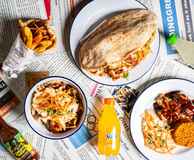 And speaking of the menu, it's brimming with Greek classics. Try their traditional souvlaki, from pork and crispy chicken to grilled halloumi, all wrapped in a Greek pita with onions, tomatoes, parsley, and chips. Diners also shouldn’t miss the chargrilled Cypriot kebabs, like the homemade sheftalia (lamb and pork sausage), or the fiery bang bang chicken with sriracha mayo.