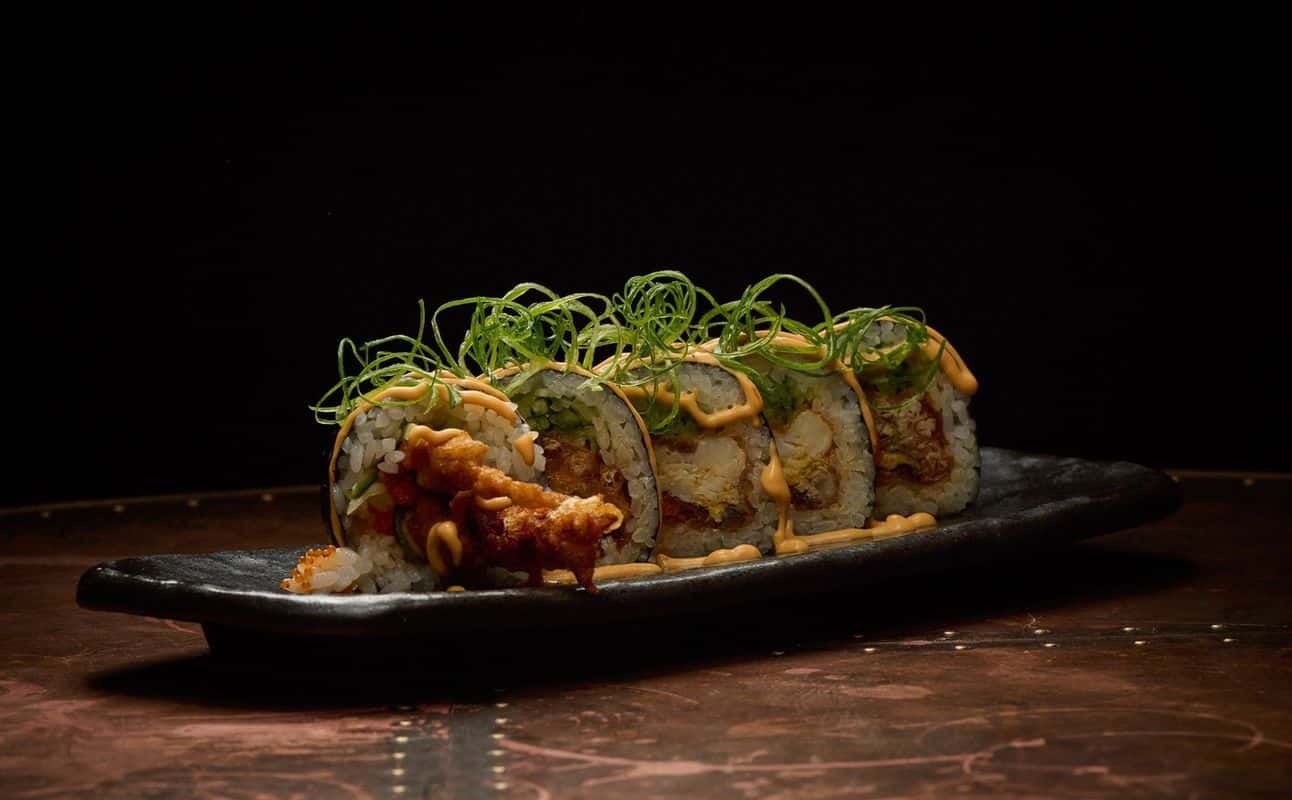 The menu takes diners on a journey that begins with bites like chicken wings glazed in smoked chilli sauce or prawn tempura with kimchi mayo, before moving to the refined freshness of the raw bar. Yellowtail sashimi shines in a citrus-bright gazpacho ponzu, while beef tataki adds depth with fillet steak, onion and truffle.